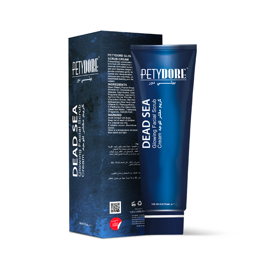 Extraordinary combination of Natural Herbal extracts, enriched with miraculous rejuvenating Dead Sea minerals formulated synergistically to soften your skin and deeply cleanse, while apricot kernel powder exfoliates gently to eliminate dead skin cells and increase normal skin desquamation. PETYDORE scrub cream removes skin impurities, unclogs pores and prevents blackheads leaving your face energized, smooth and radiant.
